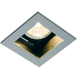 | memo: | Product Code 2350 Technical Description Recessed square tilt downlight in die-cast aluminium. Spring clips & retaining ring of stainless steel. Suitable for indoor installation only. Colours 31 White 18 Matt Chrome Light Sources Type: Halogen Watts: 50W Unit: Dichroic Volts: 12V Base: Gu5.3 Technical Characteristics Protection: IP20 Insulation Class: Class III Resistance: Flammable Cutout : 75mm x 65mm |