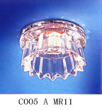 SHADE MATERAIL: CRYSTAL COLOUR:CLEAR BASE: CHORME PLATED LAMP: MR11 GU4 12V 20W-35W CUT OUT:60MM