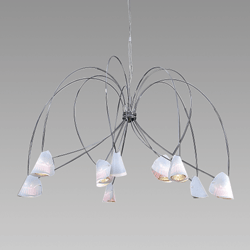 | memo: | Product Code 9401 - 9 Light | Diametre 800 9402 - 24 Light | Diametre 1200 9403 - 24 Light | Diametre 2500 Technical Description The bach range is a decorative collection of low voltage chandeliers and are available in 2 different versions namely 9 and 24 light. The body is finished in chrome aluminium with a polycarbonate diffuser in neutral. THe Bach fitting is ideal for Double volume areas because of of it's hanging depth of 3m. The arms of the fitting can be adjusted accordingly. IT IS SUPPLIED COMPLETE WITH TOROIDAL TRANSFORMER. PLEASE NOTE: Using a dichroic lamp higher than 20W will damage the fitting Colours 1161 Chrome / Neutral Shade Light Sources 9401 Type: Halogen Dichroic Watts: 9 x 20W Volts: 12V Base: Gu5.3 9402 Type: Halogen Dichroic Watts: 24 x 20W Volts: 12V Base: Gu5.3 9403 Type: Halogen Dichroic Watts: 24 x 20W Volts: 12V Base: Gu5.3 Technical Characteristics Protection: IP20 Insulation Class: Class I Resistance: Flammable |