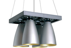 | memo: | Product Code 9265 Technical Description Surface mounted ceiling fitting with four flexible suspensions and one translucent power cord which is attached to a square base, and four cone shaped shades which is adjustable. Suitable for indoor installation only. Colours 05 Natural anodised Light Sources Light Source 1 Type: Incandescent Watts: 4 x 60W Volts: 230V Base: E27 Light Source 2 Type: Compact Fluorescent Watts: 4 x 15W Volts: 230V Base: E27 Technical Characteristics Protection: IP44 Insulation Class: Class I Resistance: Flammable |